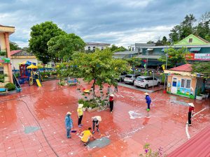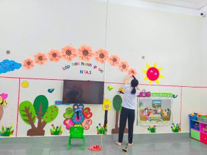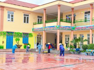 Nhà trường tiến hành kiểm tra, sửa chữa các hạng mục phòng học, sân chơi, thiết bị đồ dùng dạy học; bổ sung cây xanh, làm đẹp cảnh quan để tạo không gian học tập thân thiện, an toàn cho trẻ. Các nhóm/lớp được sắp xếp khoa học, trang trí theo hướng mở, đảm bảo tính thẩm mỹ và phù hợp độ tuổi.