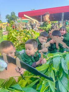 Đặc biệt, hoạt động làm cơm nắm, muối vừng đã để lại nhiều ấn tượng sâu sắc. Dưới sự hướng dẫn của cô giáo, các bé được tự tay chuẩn bị những phần cơm giản dị, qua đó hiểu hơn về cuộc sống gian khổ nhưng giàu tình đồng chí của các chú bộ đội năm xưa, biết trân trọng lao động và yêu quý những giá trị bình dị trong cuộc sống.