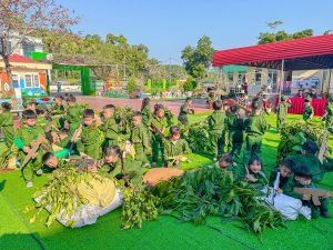 Điểm nhấn đặc sắc của chương trình chính là các trò chơi, hoạt động trải nghiệm mang đậm màu sắc “quân ngũ”, được các cô giáo tổ chức sáng tạo, phù hợp với lứa tuổi mầm non.