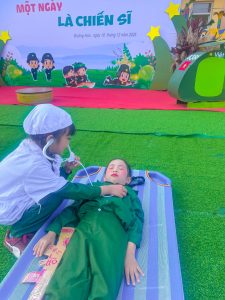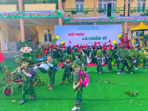 Hòa trong không khí thiêng liêng, tự hào của Ngày thành lập Quân đội Nhân dân Việt Nam (22/12/1944 – 22/12/2025), Trường Mầm non Đường Hoa tổ chức hoạt động trải nghiệm”Một ngày làm chiến sĩ”. Đây không chỉ là dịp để các con tìm hiểu về hình ảnh chú bộ đội Cụ Hồ mà còn là cơ hội vun đắp lòng yêu nước, tinh thần đoàn kết, kỷ luật và ý thức tập thể ngay từ những năm tháng đầu đời.