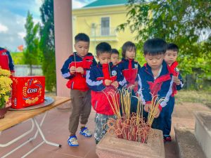 Hoạt động thắp hương đài tưởng niệm là một trong những nội dung thiết thực, giàu tính nhân văn trong chuỗi các hoạt động chào mừng ngày 22/12 của nhà trường, để mỗi kỷ niệm tuổi thơ của các con luôn gắn liền với những bài học yêu thương và trách nhiệm đối với quê hương, đất nước.