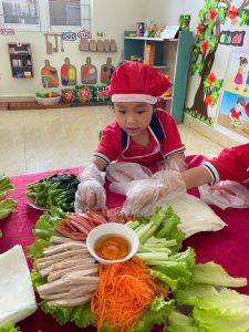 Không chỉ là một hoạt động ẩm thực đơn thuần, “Bé làm phở cuốn” còn giúp trẻ: