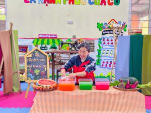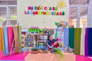 Từ những nguyên liệu gần gũi như lá dứa nếp, củ dền, nghệ,…, dưới đôi bàn tay khéo léo và trí tưởng tượng phong phú, các bé đã tạo nên những tấm vải đầy màu sắc tự nhiên, độc đáo và an toàn. Mỗi sản phẩm là một “tác phẩm nghệ thuật” mang đậm dấu ấn cá nhân của từng bạn nhỏ.