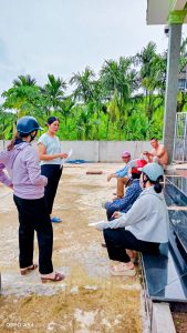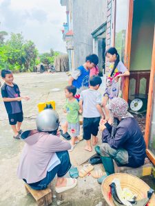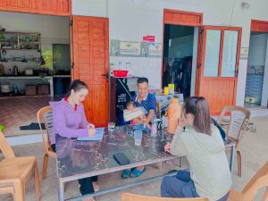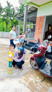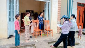 Trong các tuần đầu trả phép, các cô giáo phối hợp với các ban ngành đoàn thể, Bí thư, trưởng các thôn tích cực thực hiện công tác tuyển sinh, vận động phụ huynh cho trẻ mầm non ra lớp đầu năm.